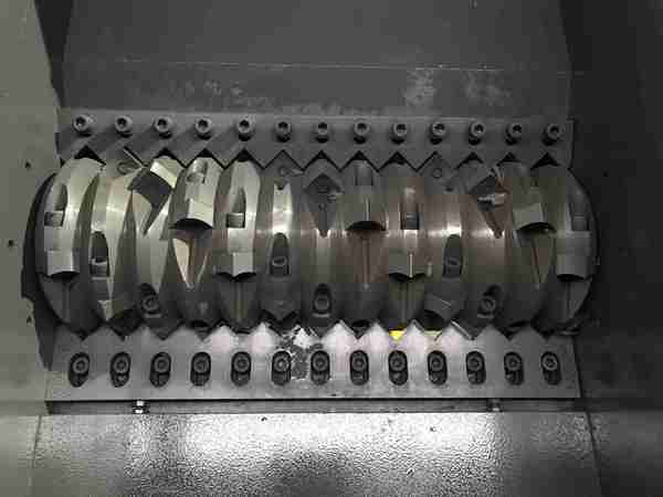 编织袋属于缠绕性比较强的物料,双轴编织袋撕碎机是利用两组动刀相对转动,利用刀片之间的夹缝把物料挤压剪切碎,符合粒度大小的编织袋碎料直接排出来,不符合标准的继续在机器里旋转剪切,这类机器的问题在于容易缠绕刀轴,夹缝里的碎料清理工作也较麻烦。